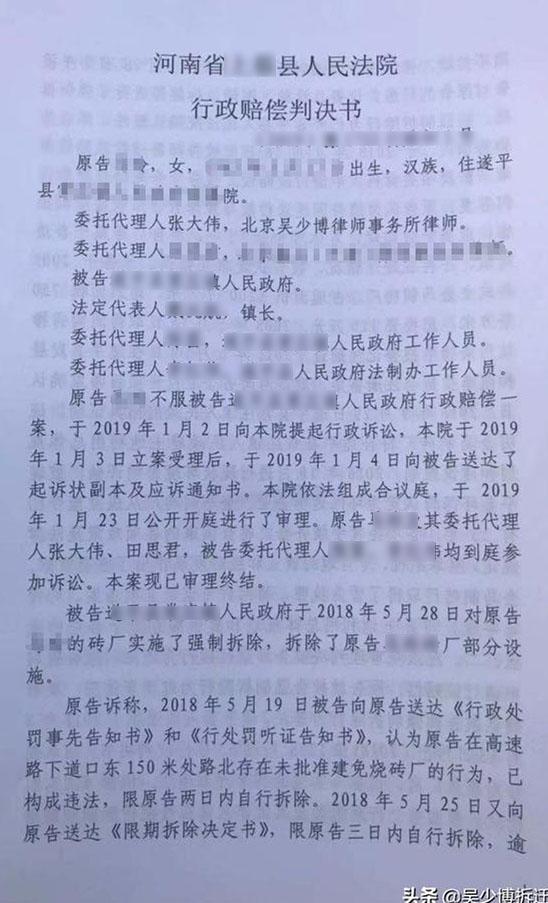 本案代理律師:北京吳少博律師事務所吳少博律師、石磊律師 本案事實 被告TS區(qū)政府于2019 年