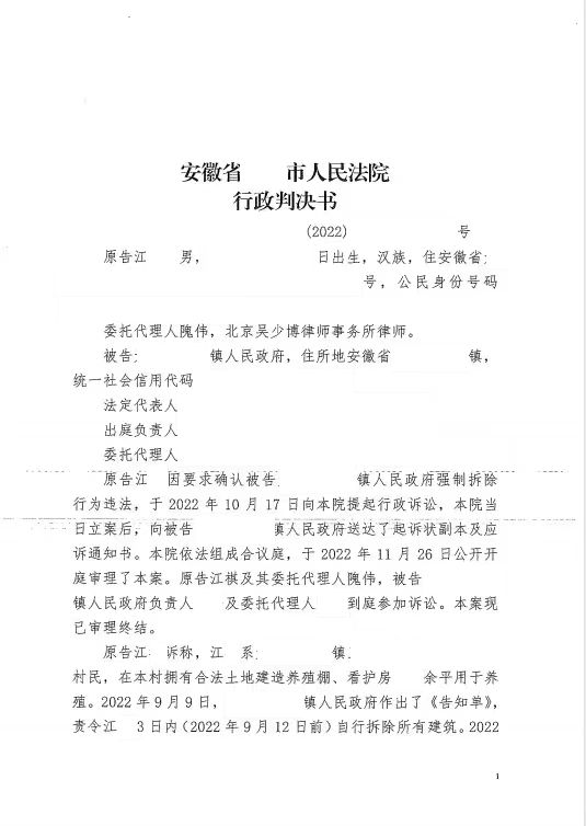 本案代理律師 北京吳少博律師事務所隗偉 案情簡介: 安徽省某市的江某,曾在村子內(nèi)修建了